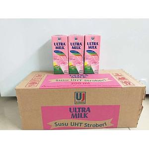 Ultra Milk Stroberi 200 ML 1 Dus/24 Pcs (Padang Dapur Pusako)